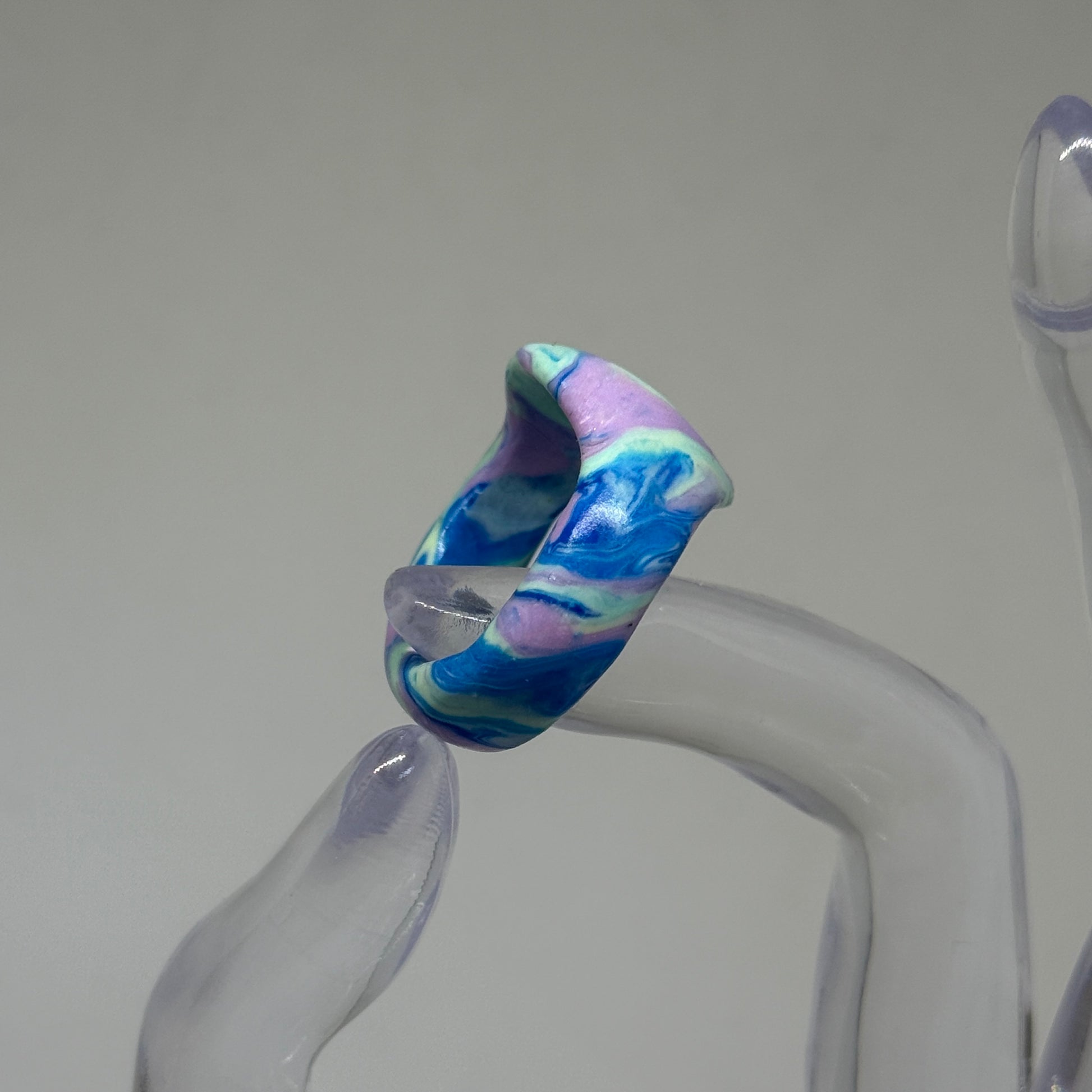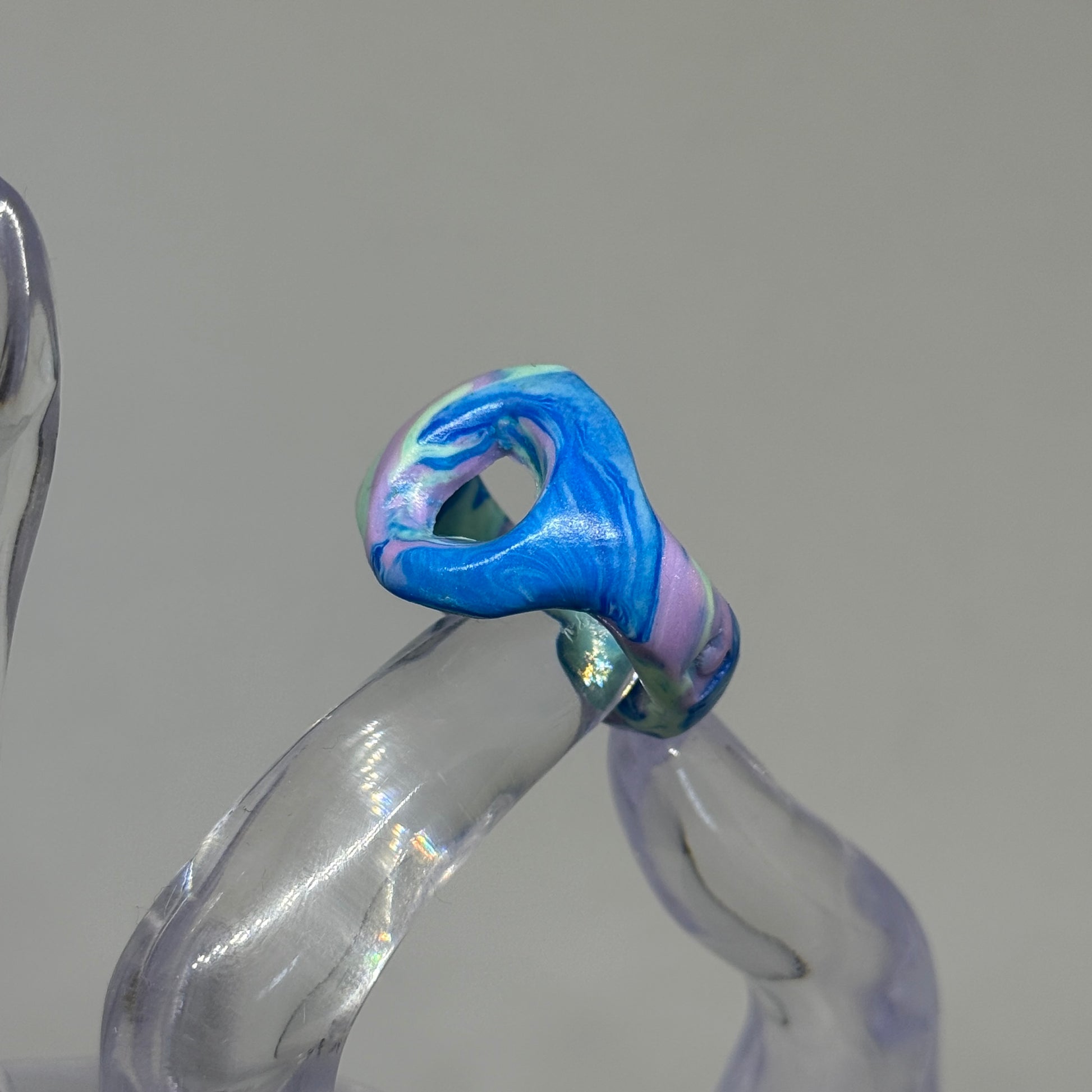 Each piece in this collection is created by assembling clay fragments left over from the production process. Each ring is unique because the colors, textures, and forms are combined in a completely random way.